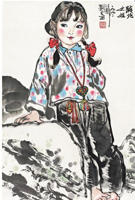 题识:陕北女娃。一九九二年二月,刘文西。钤印:刘文西